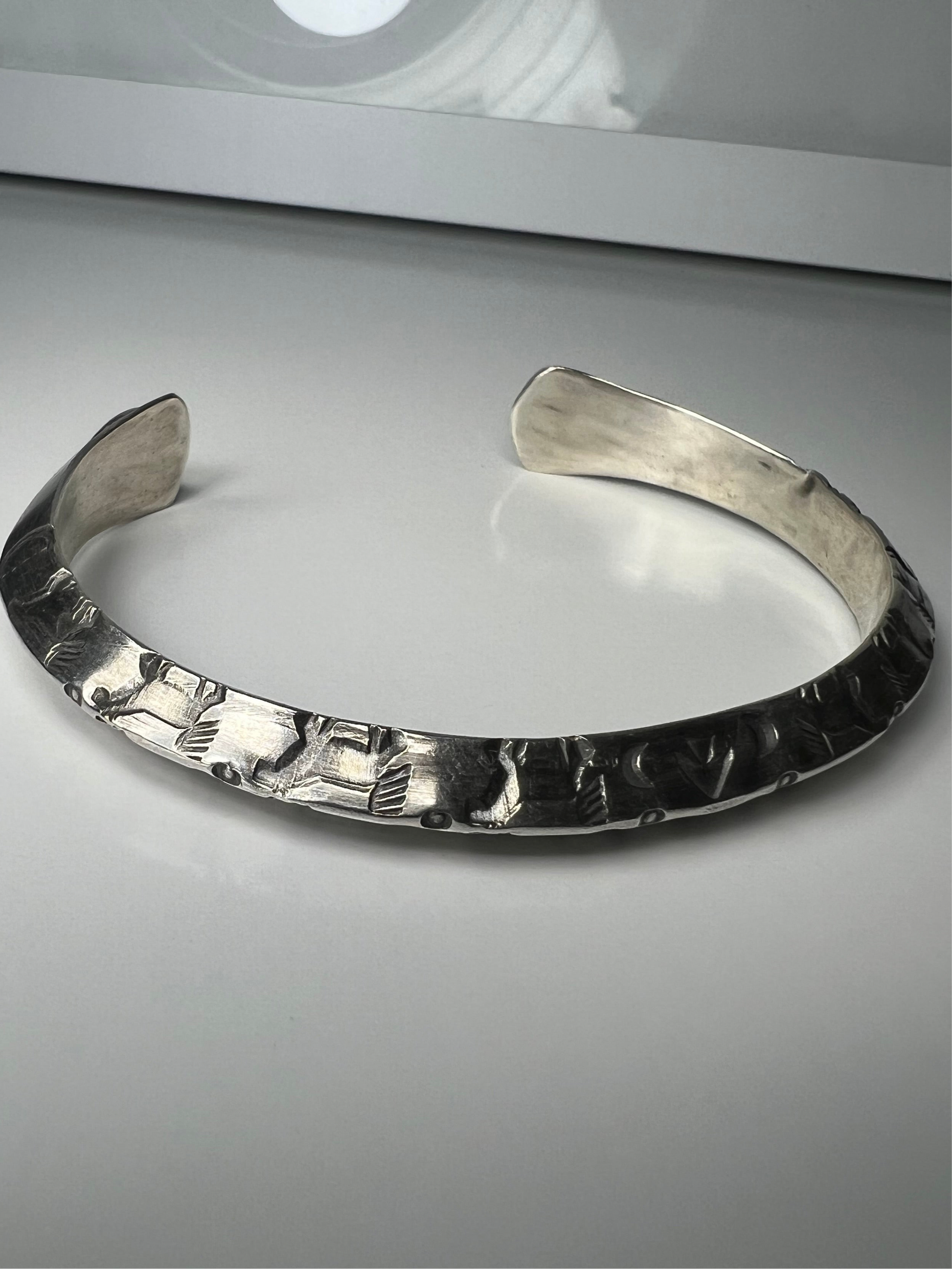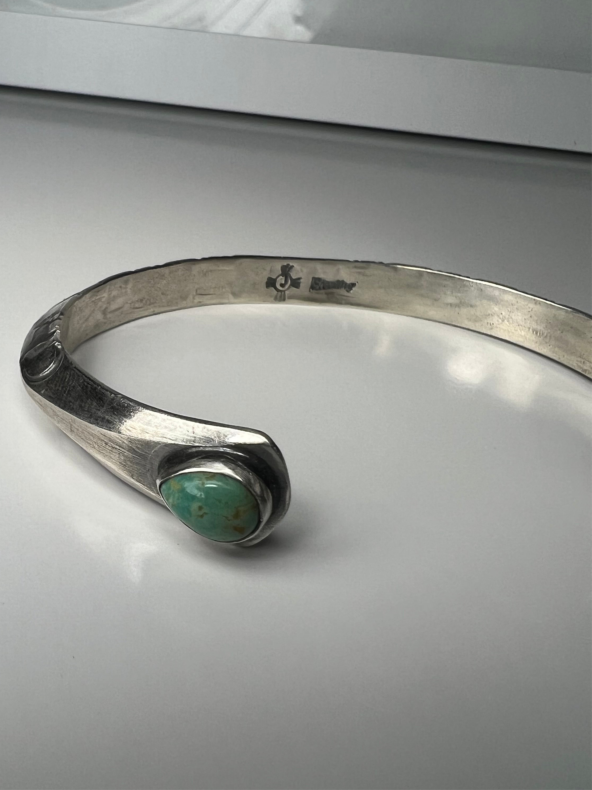 hand stamped solid sterling silver cuff with Kingman Turquoise ends.