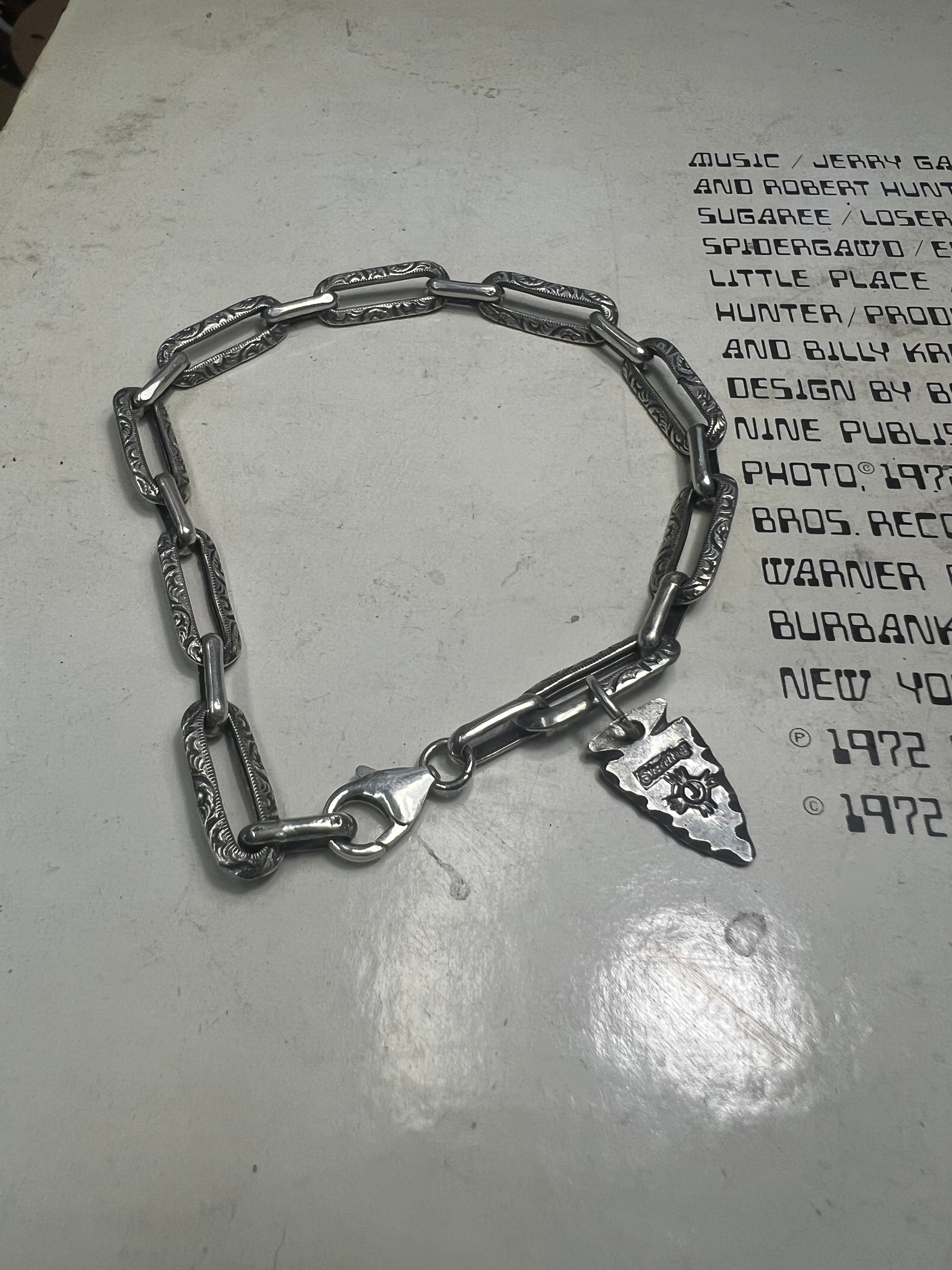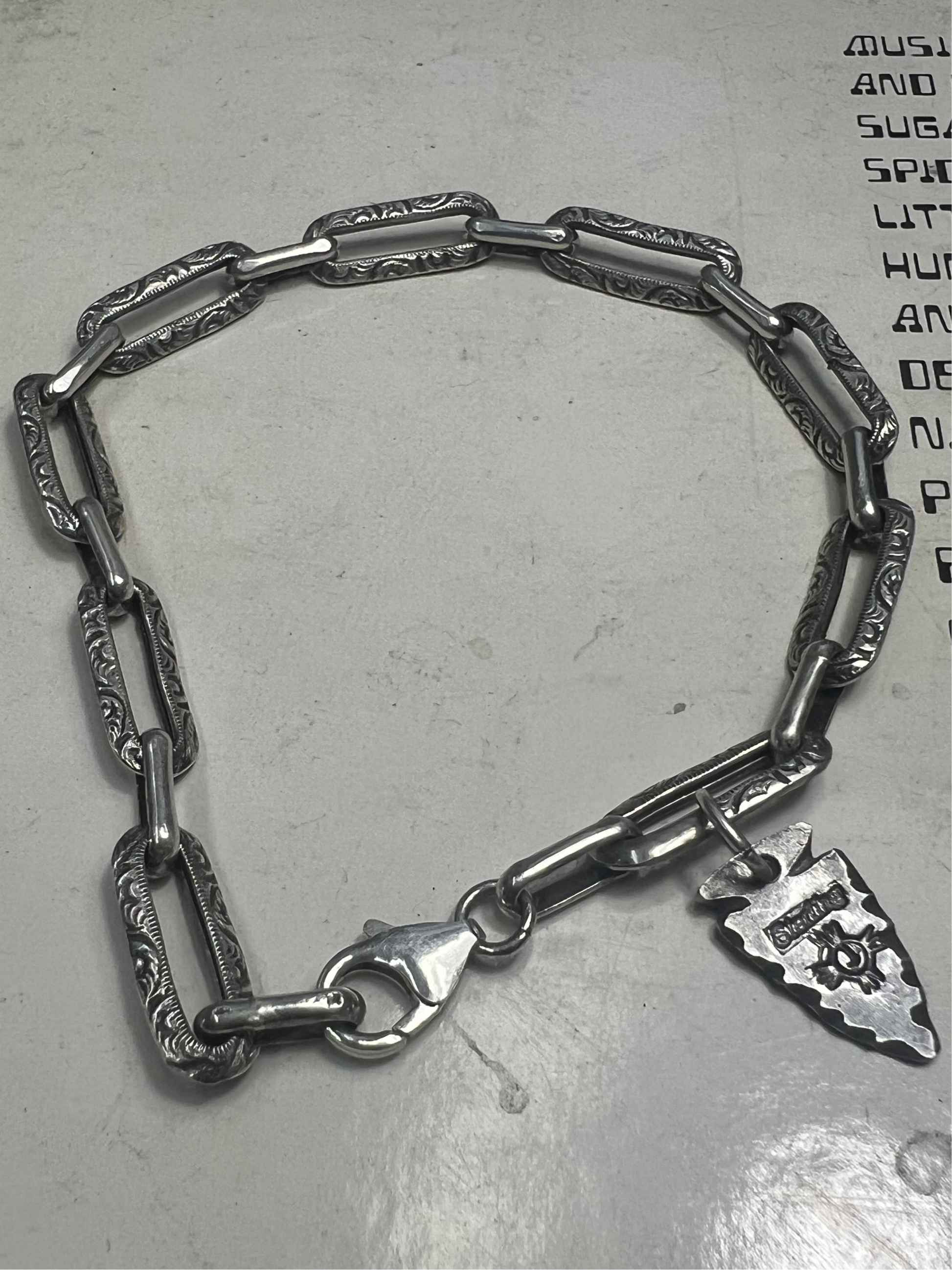 8.5 inch handmade sterling silver chain every link and clap is soldered on by hand.